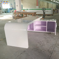 Diseño de escritorio de recepcionista médico, escritorio de Corian de mosaico inoxidable personalizado para recepción de clínica moderna Led de Spa